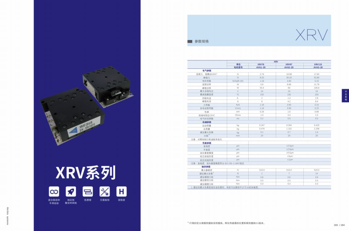 XRV系列采用Akribis矩形音圈电机系统。其具有无齿槽效应,高响应和高带宽的特点。易于驱动,适用于高精度的低速平滑运动。
