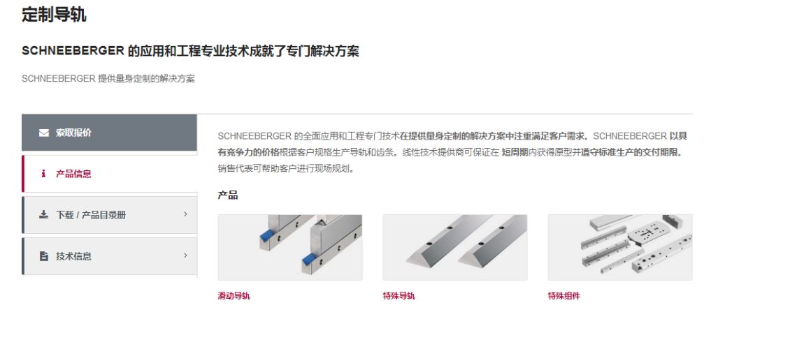 SCHNEEBERGER 的全面应用和工程专门技术在提供量身客户订制导轨的解决方案中注重满足客户需求。SCHNEEBERGER 以具有竞争力的价格根据客户规格生产导轨和齿条。线性技术提供商可保证在 短周期内获得原型并遵守标准生产的交付期限。销售代表可帮助客户进行现场规划